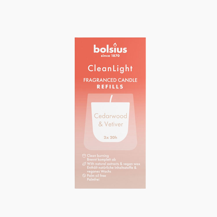 Bolsius Clean Light navulling 2 pack Cedarwood & Vertiver