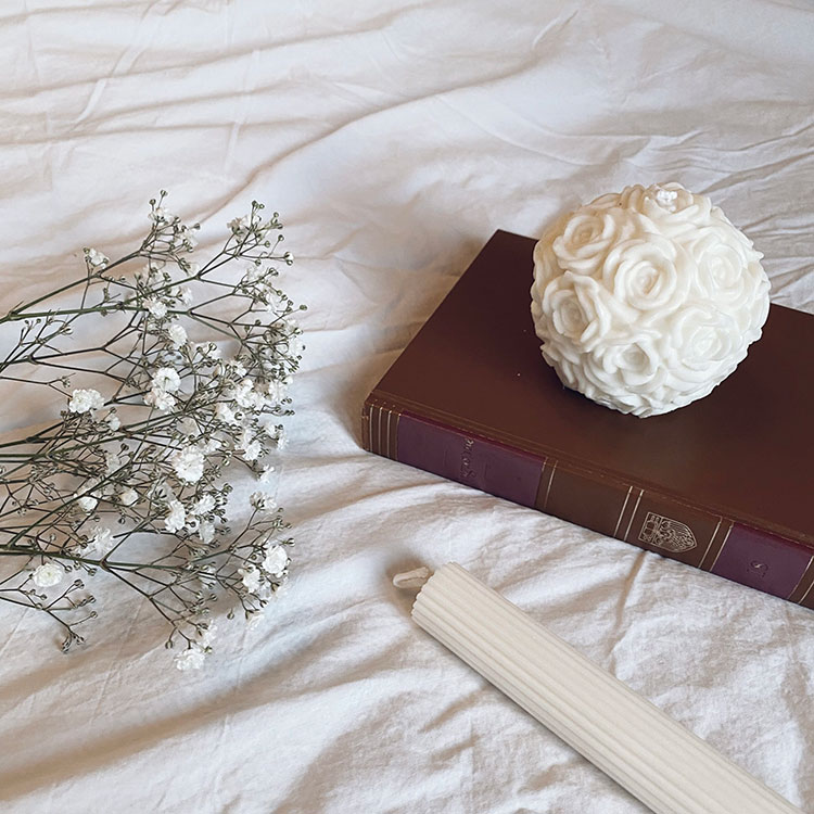 Gestreepte rustieke dinerkaars – bewolkt wit
